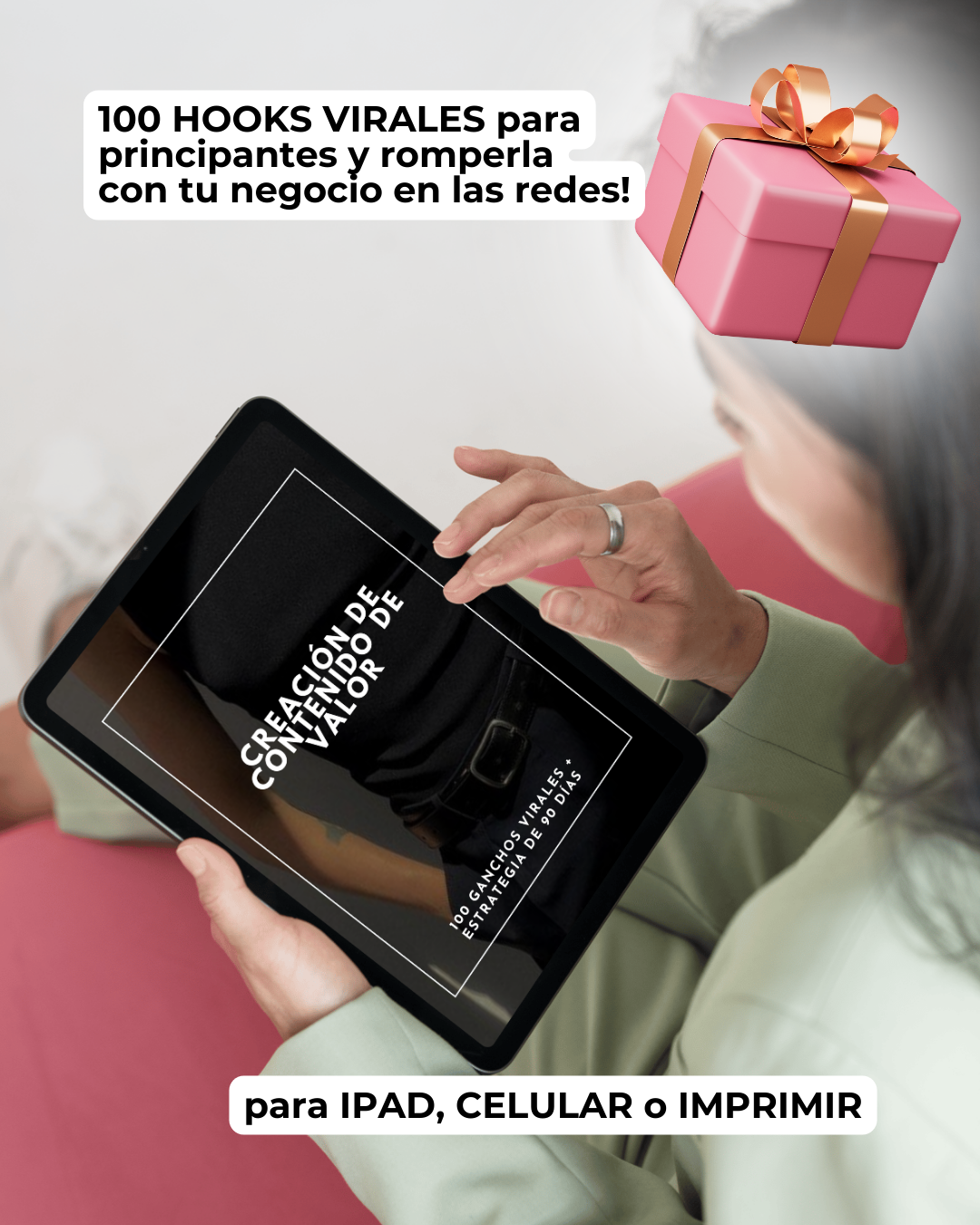 Te regalo mis 100 Hooks (Ganchos) Virales, la fórmula exacta para dejar de pasar desapercibida y obligar a tu audiencia a detener el scroll. 🛑🤳